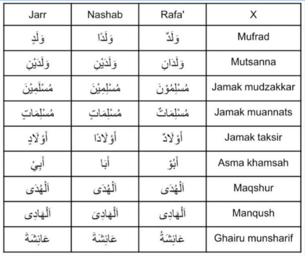 I'rab 9 macam isim mu'rab bisa diperhatikan pada tabel di atas!