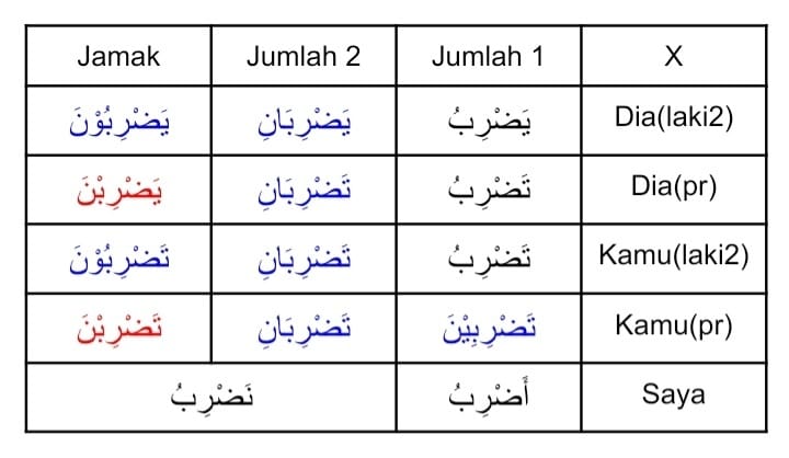 Tashrif/perubahan fi'il mudhari berdasarkan dhamir/kata ganti